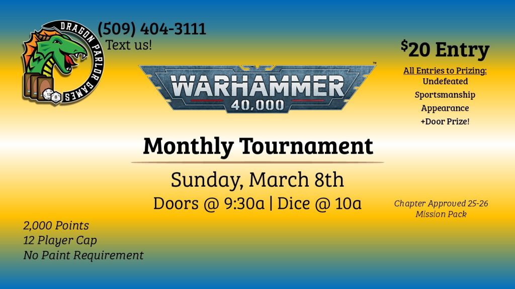 Join us at Dragon Parlor Games for our doubles tournament!