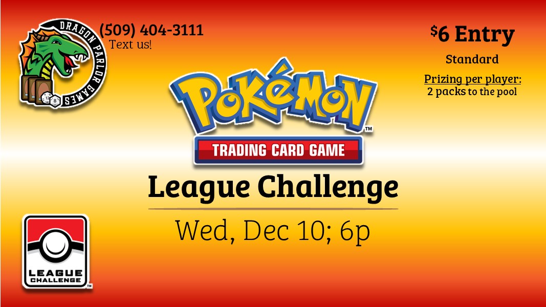 Come join us at the Parlor for our monthly League Challenge! Entry: $6 Prizing: 2 packs per entry to the pool Each player receives at least one series 7 promo pack for playing with the opportunity to earn more based on final placement Format: Standard Pairings: Swiss Rounds: Best of 1 Decklist Required. Find the […]
