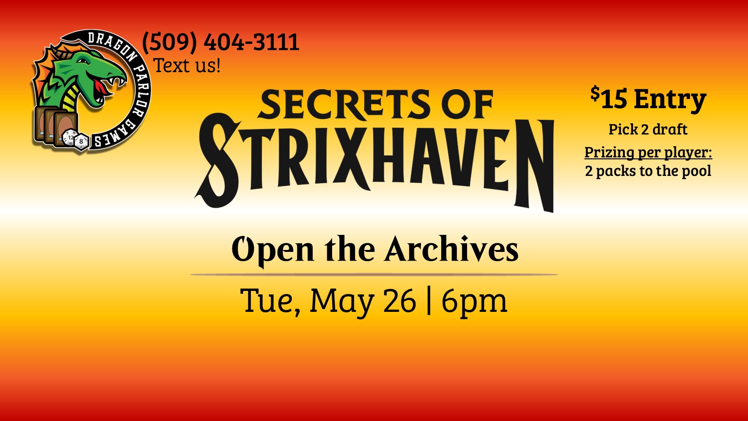 Join us for Open the Archives! This is a special pick 2 draft format in which players start each game with an emblem that enables them to cast Mystical Archive […]
