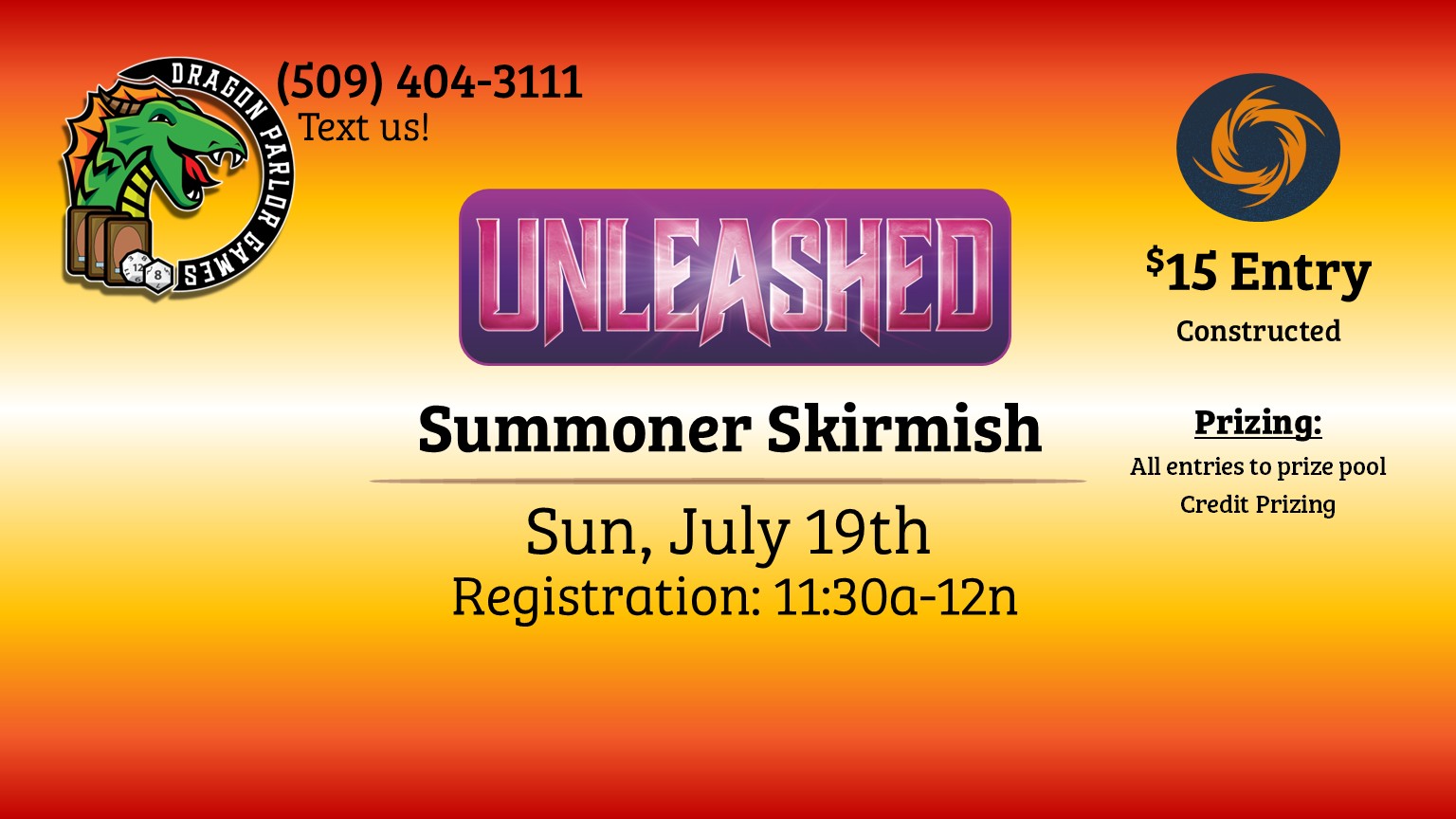 Dragon Parlor Games 1306 N Mullan Rd, Spokane Valley, WA, United StatesJoin us for our A Lawless Time Win-a-Box tournament! Format: Premier Format Competitive REL Best of 3 games Swiss Pairings Cut to top 4 after 3rd round in the event […]